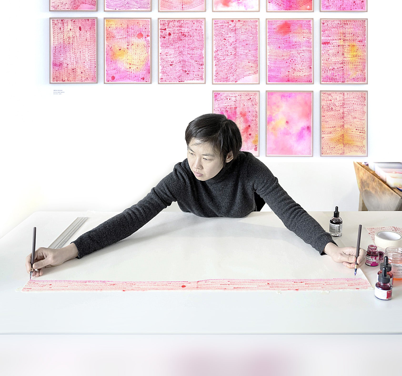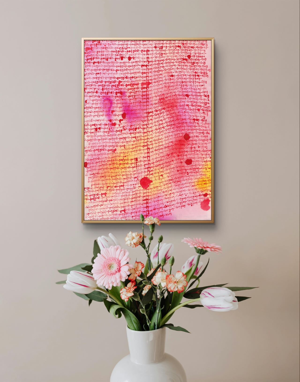 La série "Amour" a vu le jour en 2022, à l’aube de la guerre entre l’Ukraine et la Russie. Son geste fondateur fut l’écriture simultanée, de la main gauche et de la main droite, du mot amour en ukrainien — une manière de formuler un désir ardent de paix, une prière silencieuse pour une terre déchirée. Au fil du temps, l’élan s’est étendu : j’ai commencé à écrire le mot amour dans les langues du monde entier, toujours à deux mains, dans un mouvement à la fois physique et méditatif. Chaque tracé devient alors comme un mantra, une invocation pour l’âme — lente, silencieuse, recueillie. La série se poursuit, avec l’intention de faire naître plus d’une centaine de ces amour, comme autant de semences de paix, d’espérance et de tendresse. Les œuvres sont encadrées avec soin, sous un verre muséal antireflet qui protège sans détourner, et laisse à chaque mot la pleine lumière de sa présence.